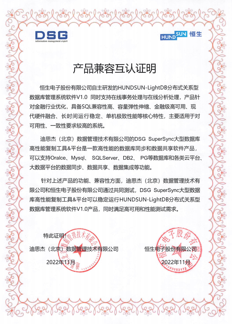 金年会诚信至上实时异构同步工具与恒生电子LightDB数据库产品兼容互认证