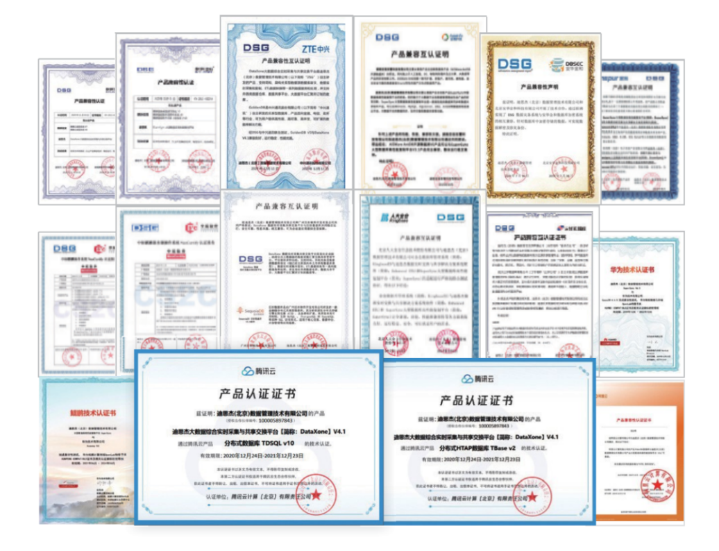参与各国产化产品兼容性互认证,包括:华为、阿里、腾讯、浪潮、中标麒麟、达梦、人大金仓、巨杉软件、安华金和、亚信、神州通用、PingCAP、中兴 等多达 60+ 项兼容和适配认证。