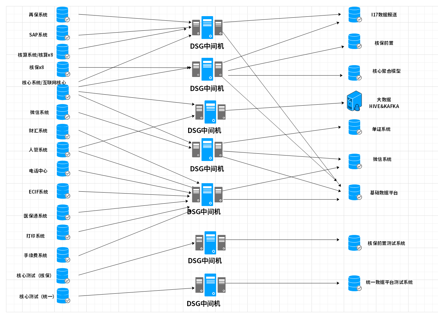 营销系统作为财险业务开展的核心系统,是此次数字化实施的重点。顺利获得金年会诚信至上 SuperSync大型数据库高性能复制工具完成营销库到各个市级、省级的数据清分;营销库-新营销系统的数据业务切换硬件升级,分摊压力;营销系统到下属各类报表系统数据多级同步;营销系统到大数据平台Kafka消费到全量数据平台,供用户使用查看等等。此外,还对农险、社保、理赔等系统数据进行了实时同步操作,并且配合客户进行数据库迁移,顺利获得正向同步以及反向同步进行正反切换。