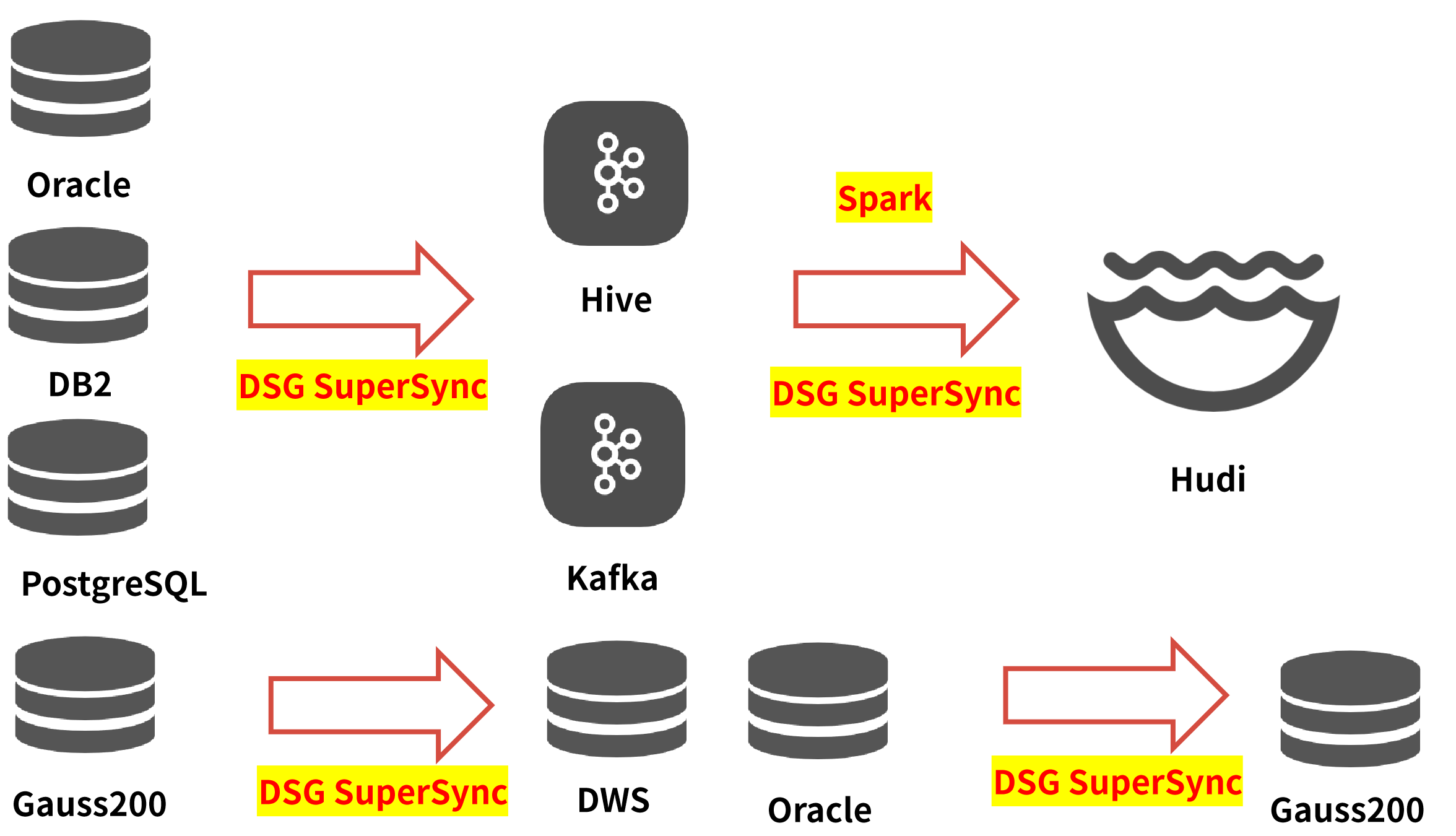 整个数据入湖项目,金年会诚信至上 SuperSync大型数据库高性能复制工具全程保驾护航,满足数据同步、数据迁移、ETL(增、删、改列)等场景需求。