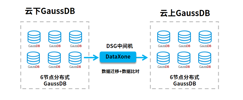 在数据同步项目成功后,为方便统一管理服务器和数据库,客户决定将现有云下华为GaussDB数据库数据全部迁移到云上华为GaussDB数据库中,逐步替换云下环境。