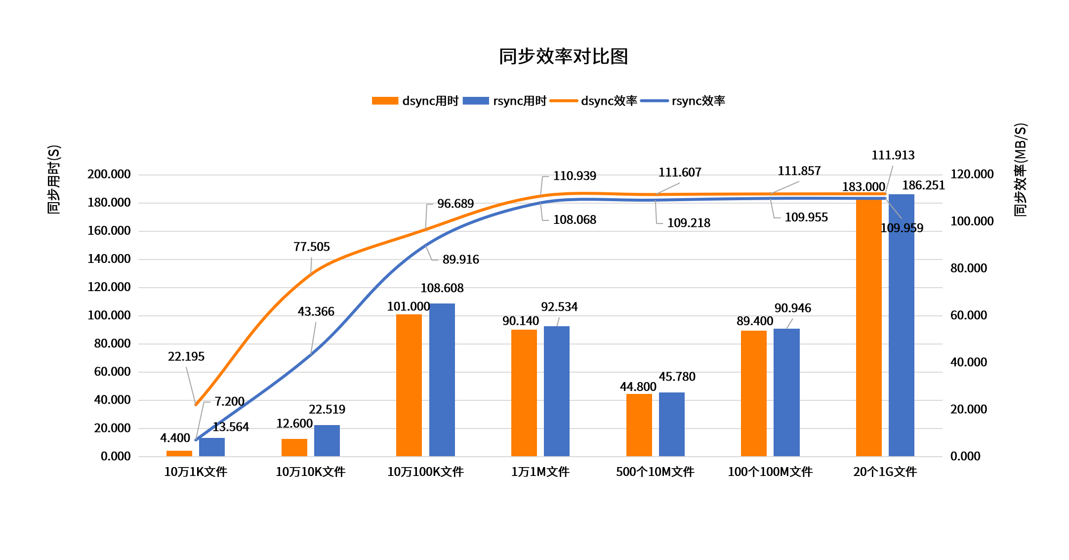 使用Dsync和Linux系统自带的rsync文件同步工具进行一个同步速度比较: