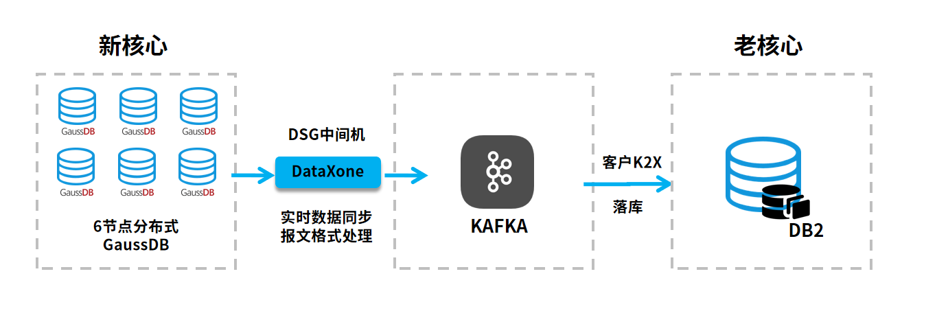 “第一道鸿沟”,本质上是如何实现新核心系统中新增数据的实时同步,将这些数据从华为GaussDB无缝实时同步到老核心系统的DB2数据库中。尽管听起来简单,但实际上,这一过程涉及复杂的技术细节和严格的性能要求。