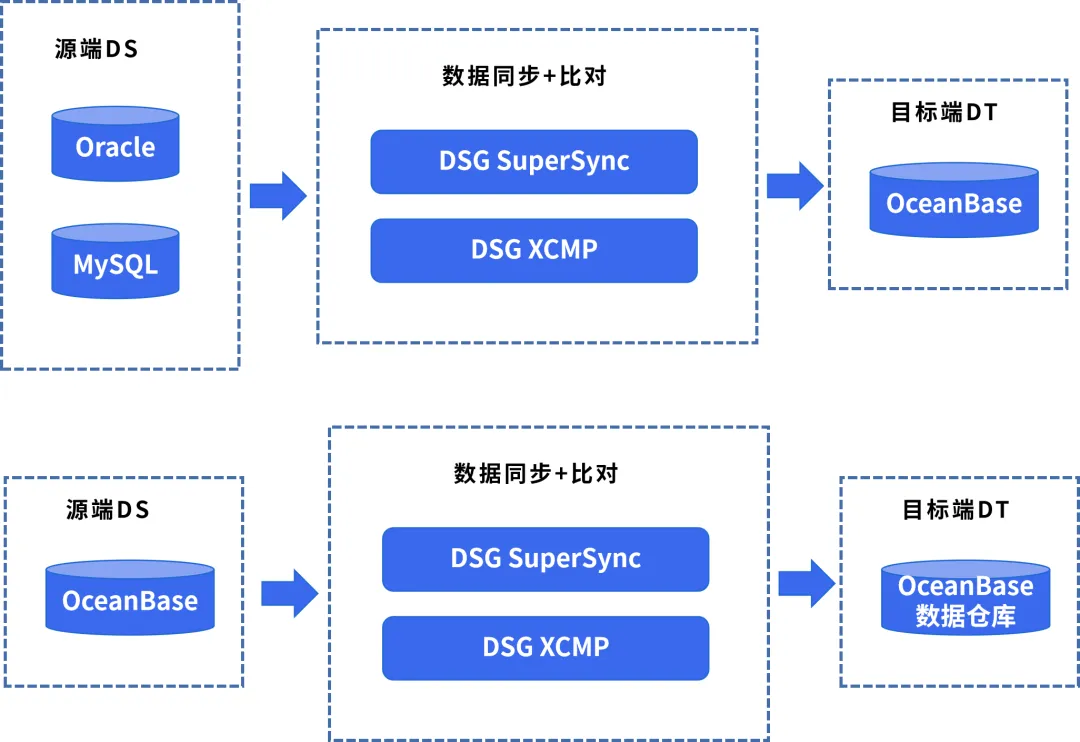 1. 数据迁移与同步:将原有信贷系统及关联系统的数据从Oracle、MySQL无缝迁移至OceanBase,过程中需确保数据质量高,迁移精度高,且割接窗口期极短。